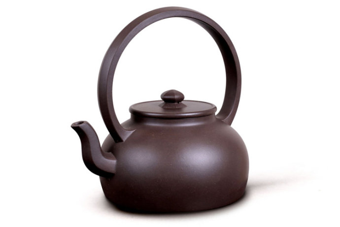 提梁:从铜器及其他器形吸取而来的壶式,除提梁的大小与壶体协调外,其高度以手提时不碰到壶盖的钮为宜,有硬提梁、软提梁两种,光素器、花塑器都有,变化丰富。