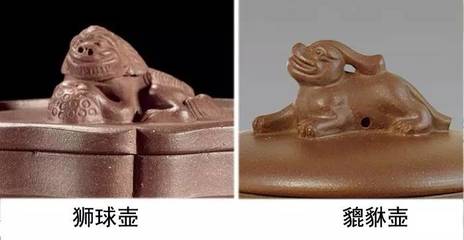 一、壶钮:亦称(的子),为揭取壶盖而设置。钮虽小,但有“画龙点睛”的作用,变化丰富,是茗壶设计的关键部位。常见有球形钮、珠钮、桥梁钮、瓜柄形钮、树桩形钮、动物肖形钮