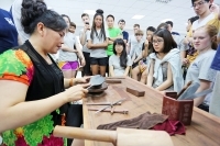 “洋学生”大开眼界 日期:2014年06月23日 阅读:4125次 扫码手机阅读 摘要: 6月21日,来自上海交通大学密西根学院的36位留学生,来到位于丁蜀镇的范家壶庄,现场观摩并体验紫砂制作技艺。宜兴悠久的紫砂文化,精美的紫砂艺术品,让这帮“洋学生”赞叹不已。 &nbs 6月21日,来自上海交通大学密西根学院的36位留学生,来到位于丁蜀镇的范家壶庄,现场观摩并体验紫砂制作技艺。宜兴悠久的紫砂文化,精美的紫砂艺术品,让这帮“洋学生”赞叹不已。 (本报见习记者 翟霄帆 摄)