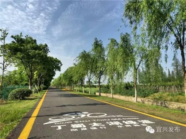 丁蜀镇太湖绿道南起乌溪港,北至大浦港,西至湖滨公路,东至太湖,总占地面积约9平方公里,南北长约10公里,东西进深约900米。