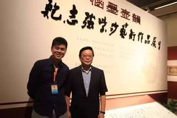 (作者在其鲍志强大师中国美术馆个展上与鲍大师合影)