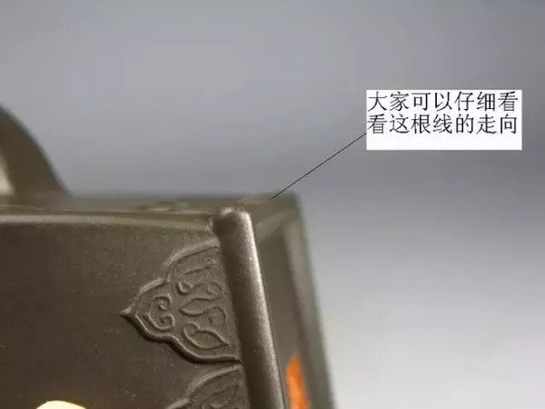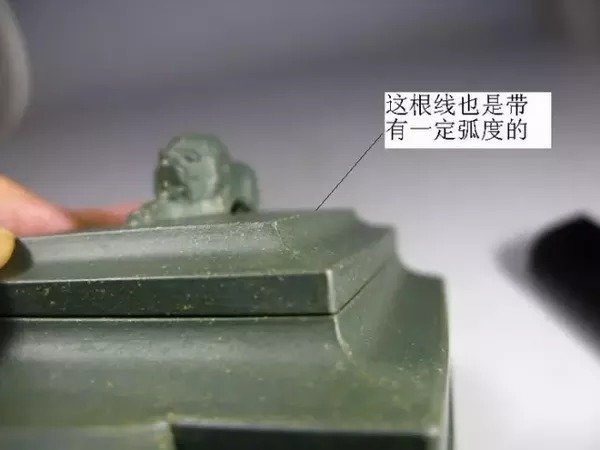 就算我们从正面看到的是纯粹的直线,就算作者制作的壶是纯粹的方货。当我们近距离的观察的时候就会发现,其实远观的直线,近看都是向外鼓出的弧线。
