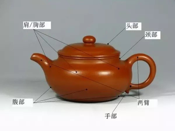 紫砂壶的基本构成一般是以人体腰部以上(含腰部)的部分作为主体。其中包括头部、颈部、胸/肩部、两臂、手部、腰/腹部等部件。换句话说,紫砂壶体所描述的主体结构部分几乎不含腿部和足部。即便有,所占比例也很小。例如上双底、三足、四足、宽出/外飘的复合底等修饰手法。