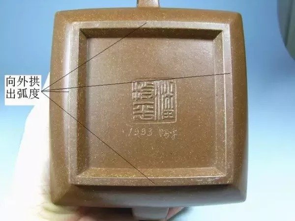 根据以上的概念,我们再看看一把方础壶。对比细节,应该会一目了然了。构成方础的每一根线,都是弧线。也只有由外鼓的弧线构成的整体,才能显得更饱满,更有气度。