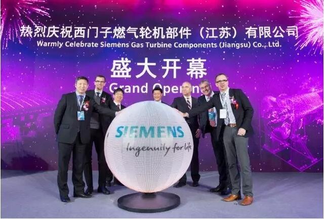 北极星火力发电网讯:西门子燃气轮机部件(江苏)有限公司今日举行落成典礼,该工厂位于江苏省宜兴开发区,主要生产燃气轮机设备热通道部件,其中包括西门子先进的燃气轮机透平叶片。