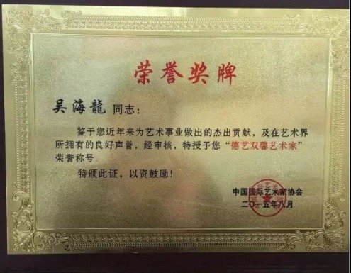 2014年7月11日,经中华人民共和国美术师评审委员会审查通过,吴海龙大师作品具备国家一级美术师任职之资格;