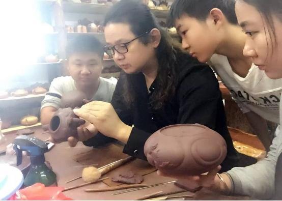 "当了许多年雕刻家,当过很多美术学院的艺术讲师,多年前也曾是厨师,做过一些到了现在自己和朋友还挺喜欢的菜,狮子头、白烧河豚也是令老饕们回味无穷。至今还在雕,还在刻,仍然精力无限,无限好奇,无限地热爱着工作,热爱着家人和朋友,还有美食,还有紫砂,认为它们就是人生之中最能让人感觉活的质地丰满而又滋滋美妙的一些存在。"