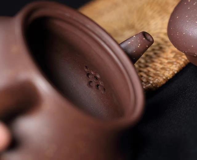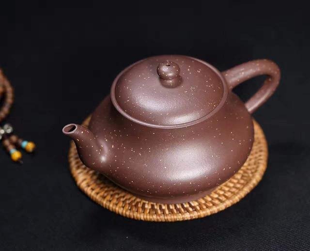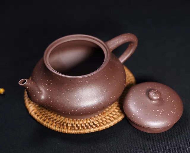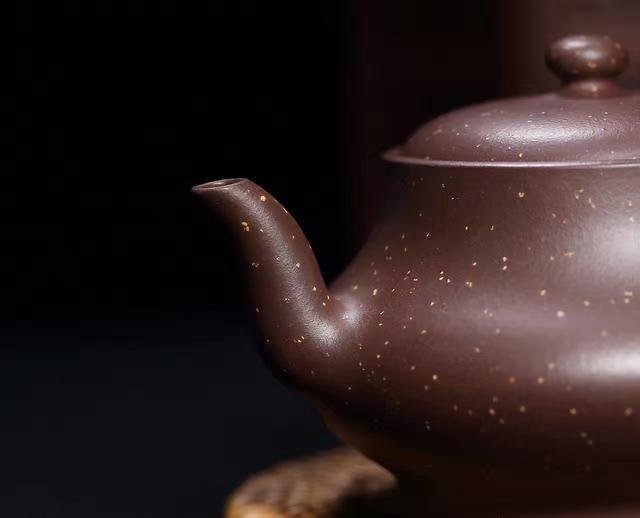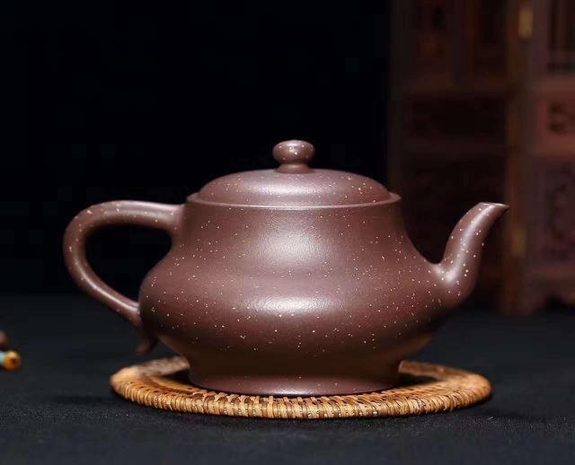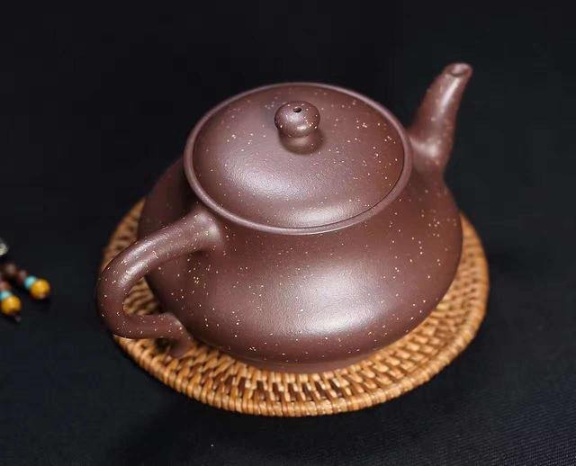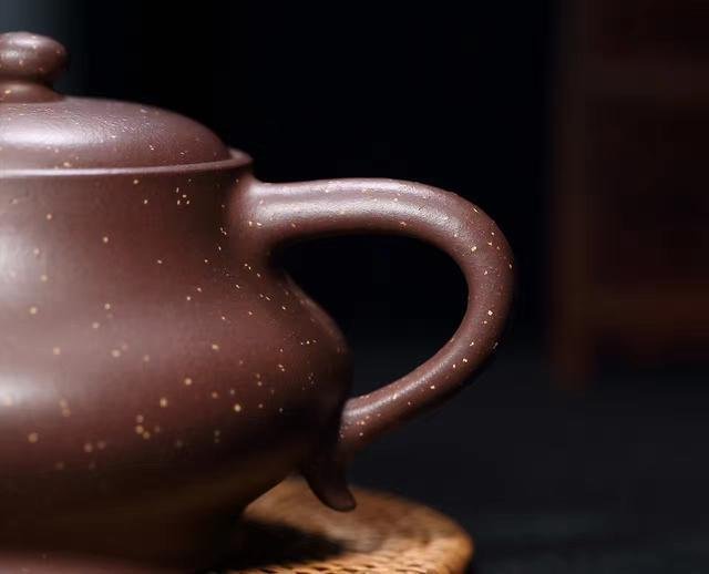 紫泥铺砂,你了解吗?紫砂铺砂工艺是指紫砂坯体在制作过程中,把不同泥色的砂粒采用铺、点、撒等方法 ,施于尚有一定湿度的坯体表面。再借助工具将砂粒嵌入坯体表层,铺砂主要起到点缀装饰的作用。我们来看这款思亭 ,铺砂的装饰手法起到了"珠粒隐现,光闪夺目"的特殊效果。