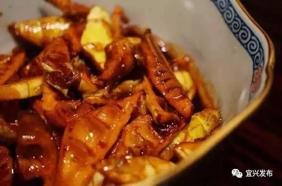 笋的用途极为宽广,笋尖剁碎,与鸡蛋一起炒,取其脆嫩;咸肉煨笋即所谓的腌笃鲜;油焖笋则可享受大口咀嚼的快感;而笋干则是一年到头可供食用的山里特产。山里人对于笋干的制作极其讲究,上好的竹笋,取其最鲜嫩的笋尖,洗净后上笼屉隔水蒸,蒸透后在阳光下暴晒至干透,这种笋干色泽浅黄泛白,无一丝杂色,产量稀少,是笋干中的上品。在传统的鱼香肉丝中,笋丝是必不可少的主料,因为要切长丝,必须取笋的中段,如笋不够鲜嫩,则嚼之难免起渣,宜兴山区的笋足够肥硕,切丝后能确保脆嫩。三丁包中的笋粒也是点睛之作,软塌油腻的馅料因为笋丁的加入而变得清爽有嚼头,宜兴笋质地紧密,能除一切油腻。