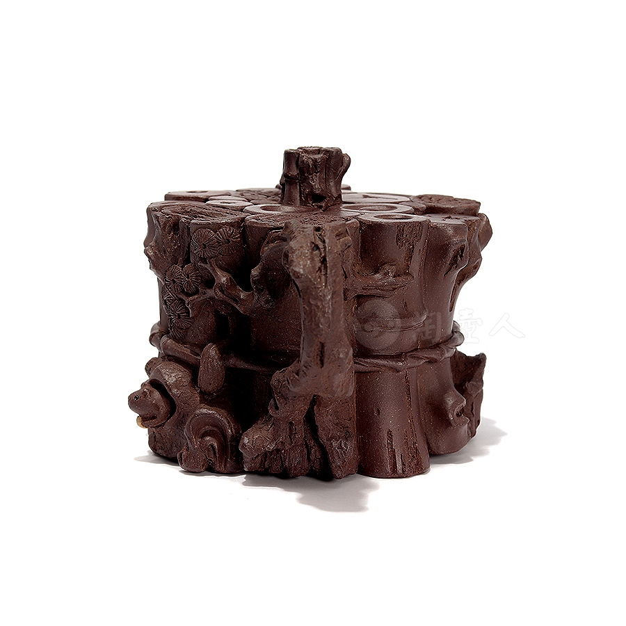 “堆、雕、塑、捏”的综合运用:这已远远超出了传统紫砂的“拍打镶接”技法,更像是雕塑艺术。严强运用各种手法,将树皮的粗糙、竹节的光滑、梅干的苍劲表现得淋漓尽致。