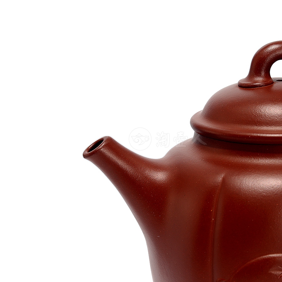 此件妙心圆悟壶,采用原矿底槽清精心制作而成,壶身高挺沉稳,四条纵向筋纹隐然勒分,鼓盖之上,桥钮横卧,直流搭配圈把,各部件比例协调,观之只觉通体和谐,无一处多余,无一处欠缺,恰如禅理中的“圆满”。