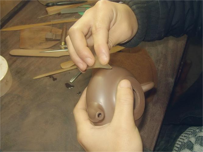 这项工艺以塑料板、牛角片等光滑器具为载体,对紫砂壶生坯表面进行细致刮压,看似简单的操作,却深刻影响着壶的最终品质。