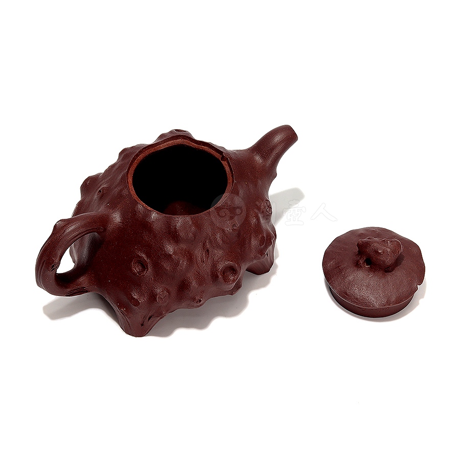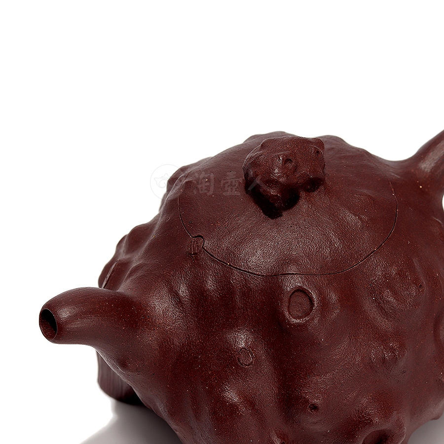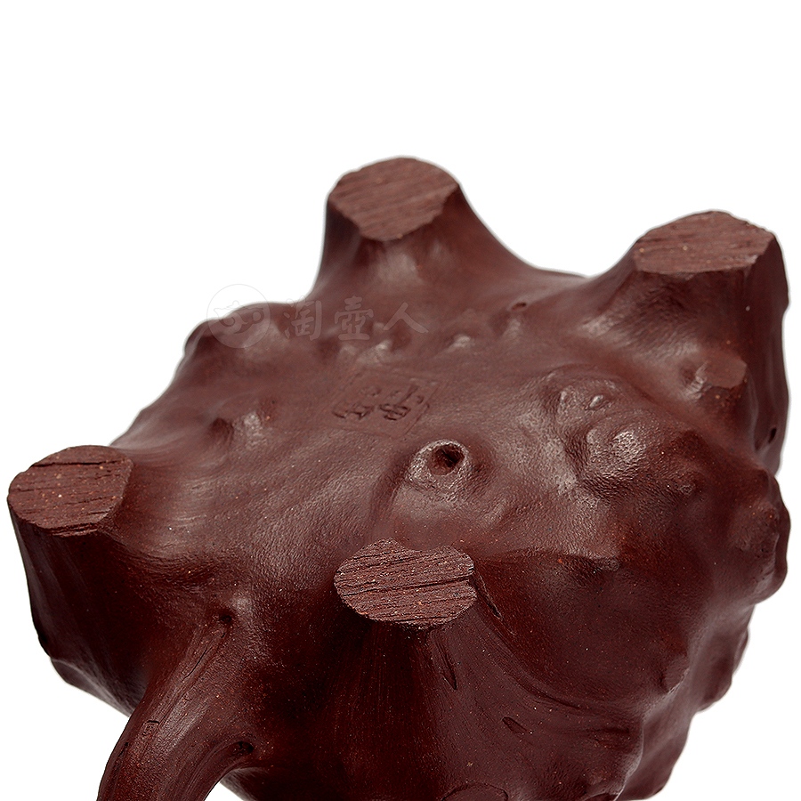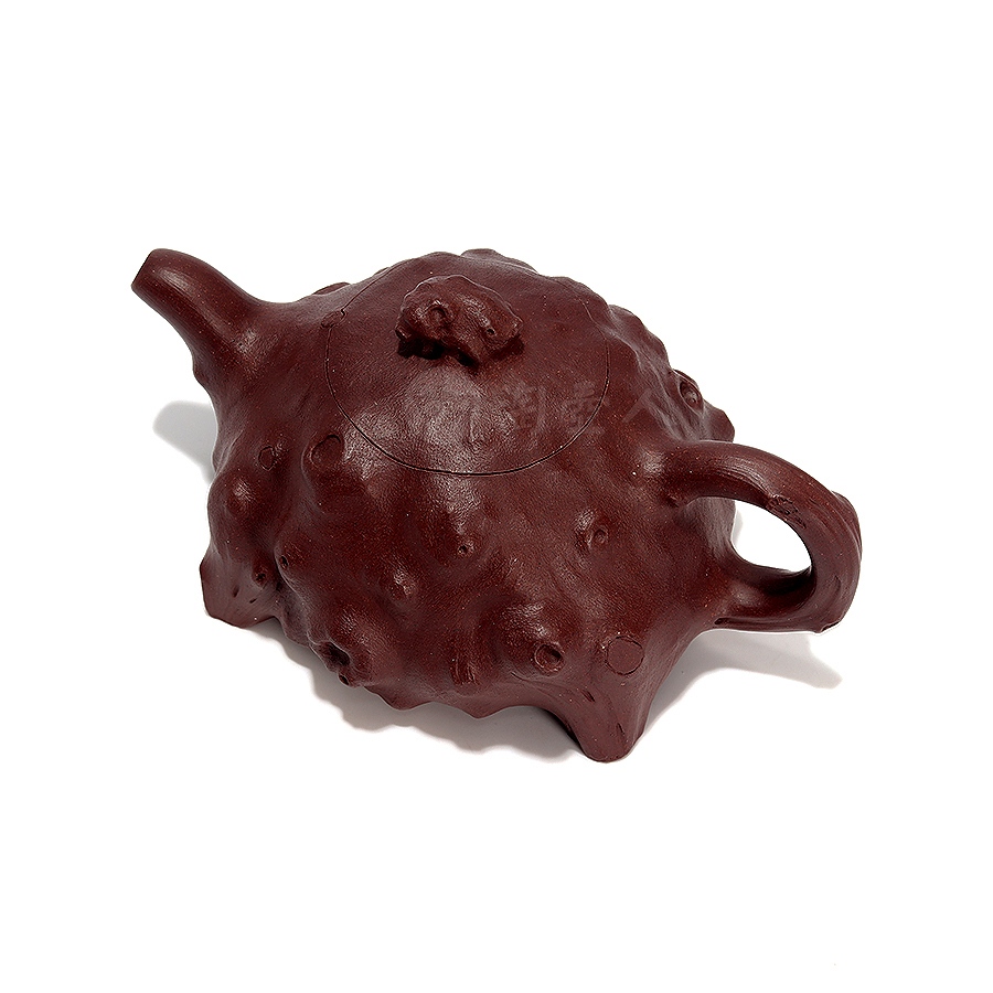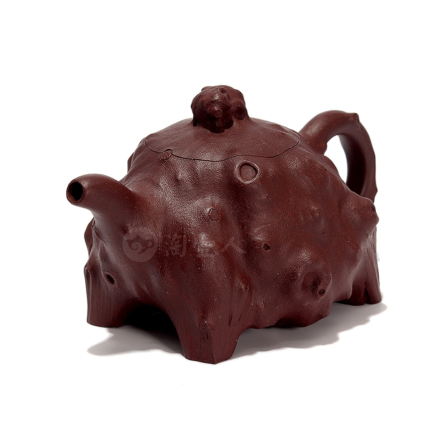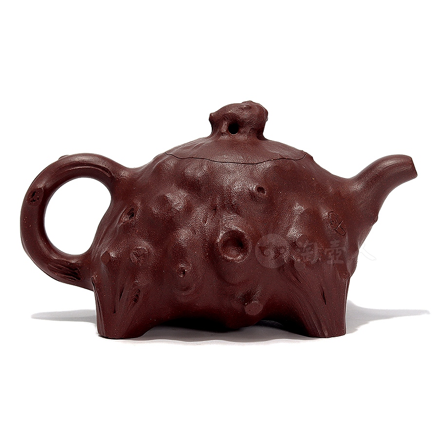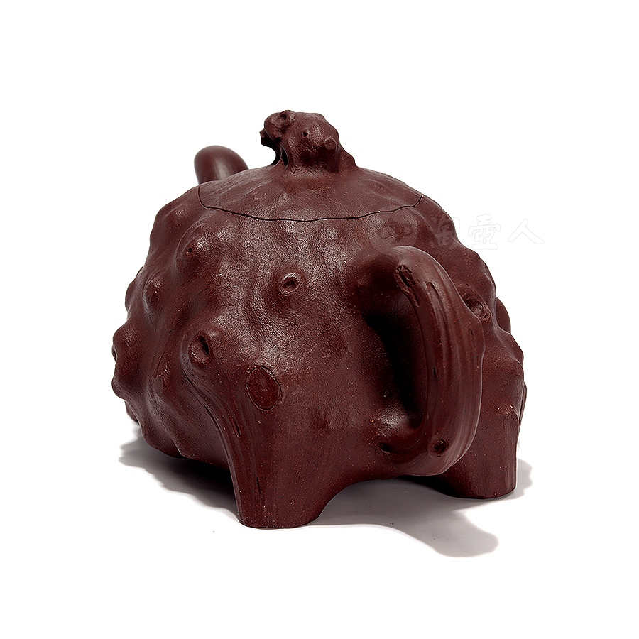 壶的造型模仿“树瘿”,泥色沉稳内敛,仿佛一件历经岁月洗礼的老木器物,充满了古朴沧桑的质感。