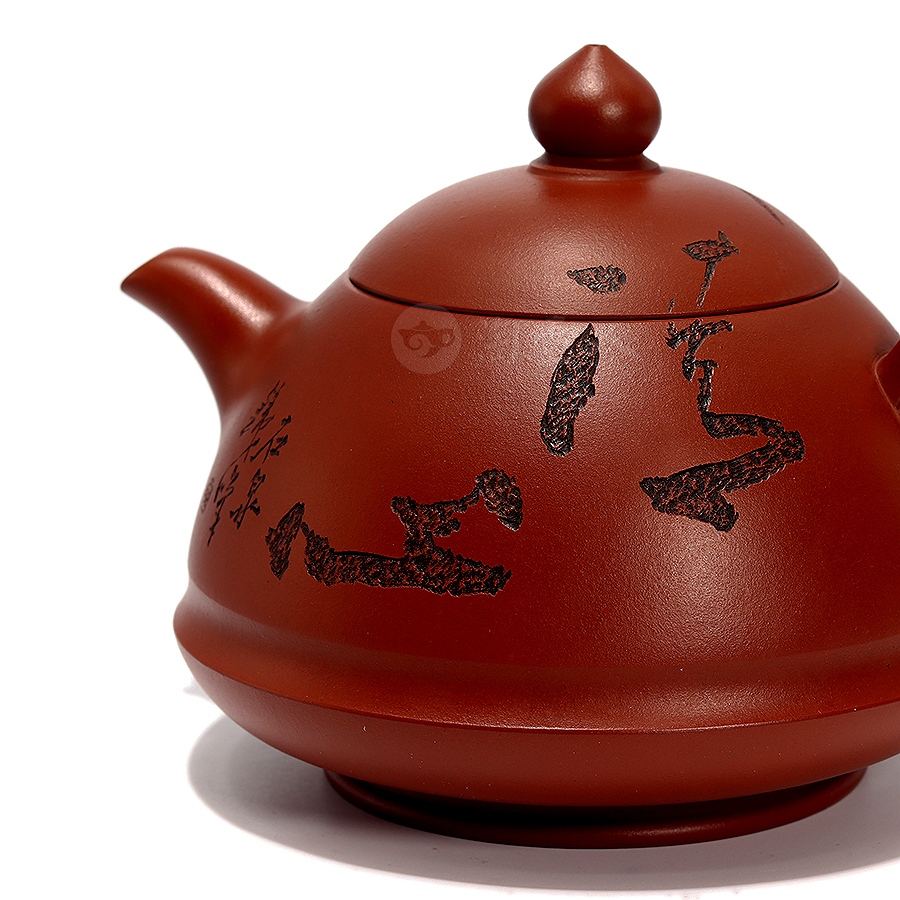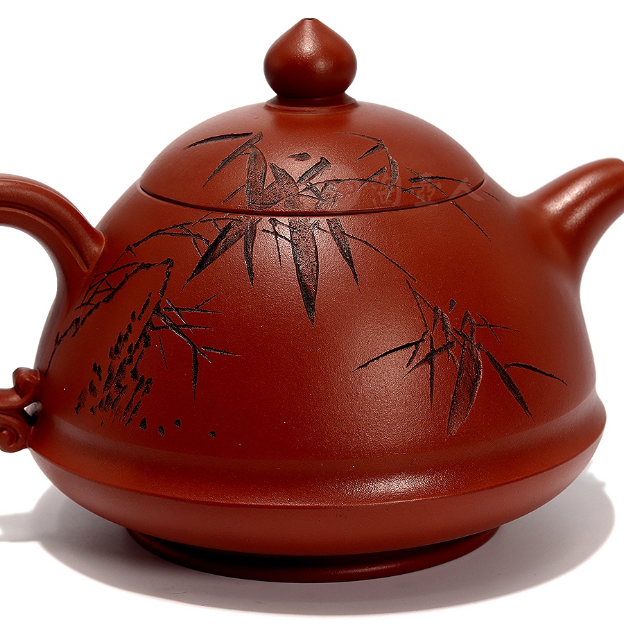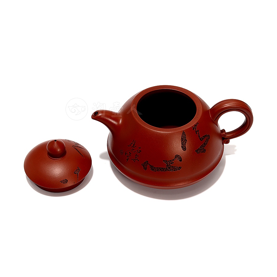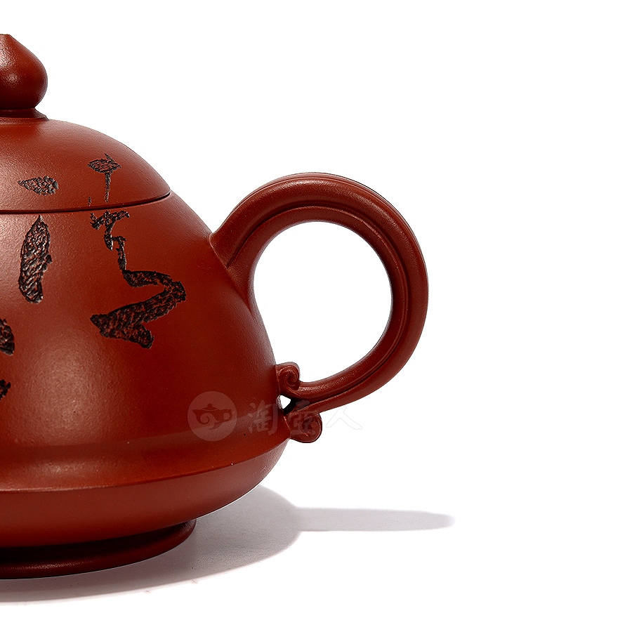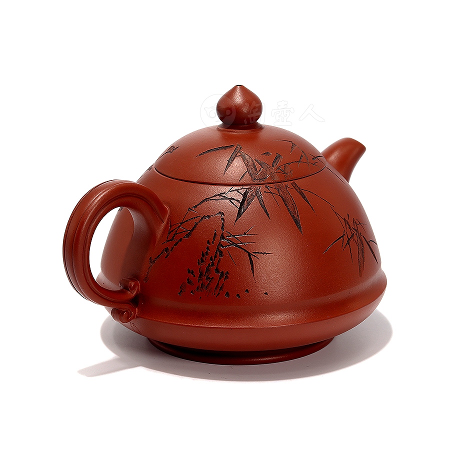 壶身陶刻出自谭泉海大师之手,正面镌刻“清心”二字,笔力遒劲,风骨凛然,落款“石泉铁笔”,反面刻绘破土而出的新竹,竹枝挺拔,竹叶舒展,寥寥数笔便勾勒出竹子的清隽风骨与蓬勃生机,尤为精妙的是,字与画皆跨盖、身相接,盖合时笔墨连贯无间。整器集材质之优、工艺之巧、意境之雅于一身,把玩之间,可赏其形、品其韵、悟其道,力荐藏用。