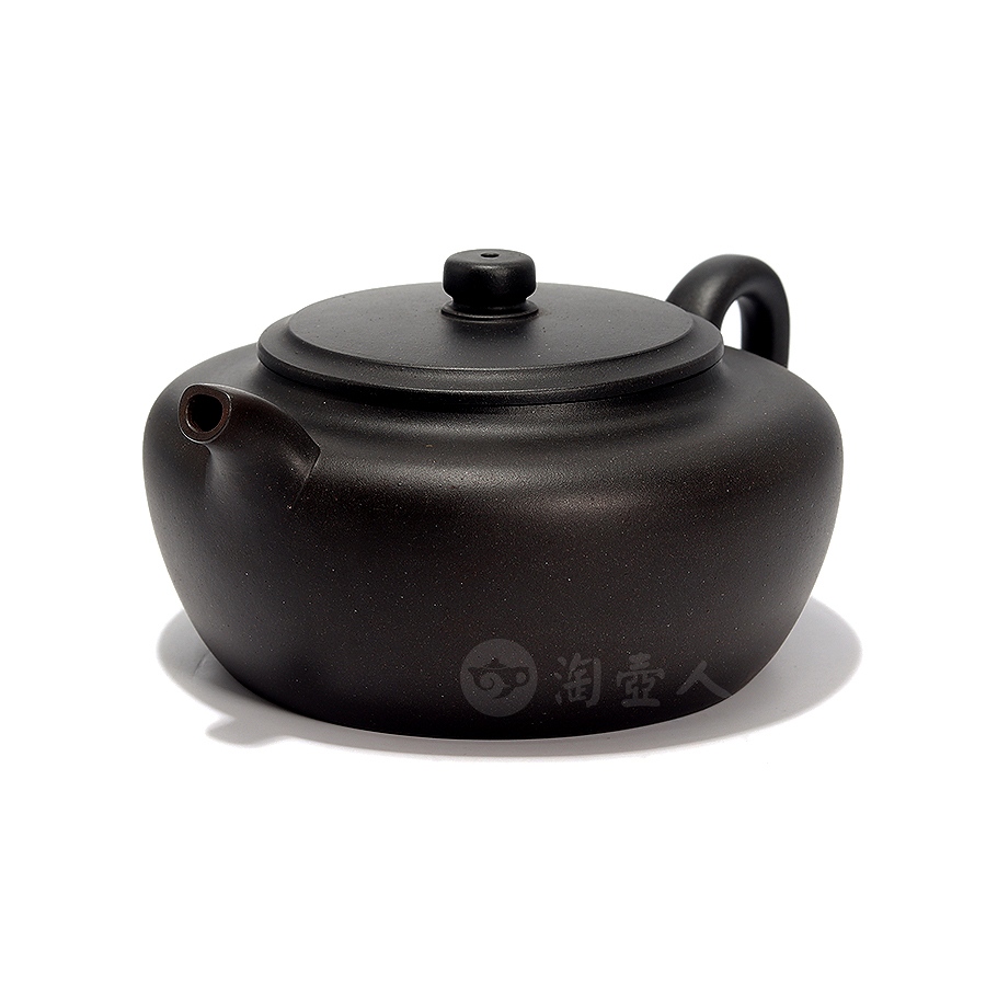 短颈平盖,盖面起二阶,具层次之美,短柱钮端立中央,一弯流上平下圆,昂扬上翘,耳把上扬,与壶流对应成势。整器简约美观,270CC容量实用性强,为高性价比之选。