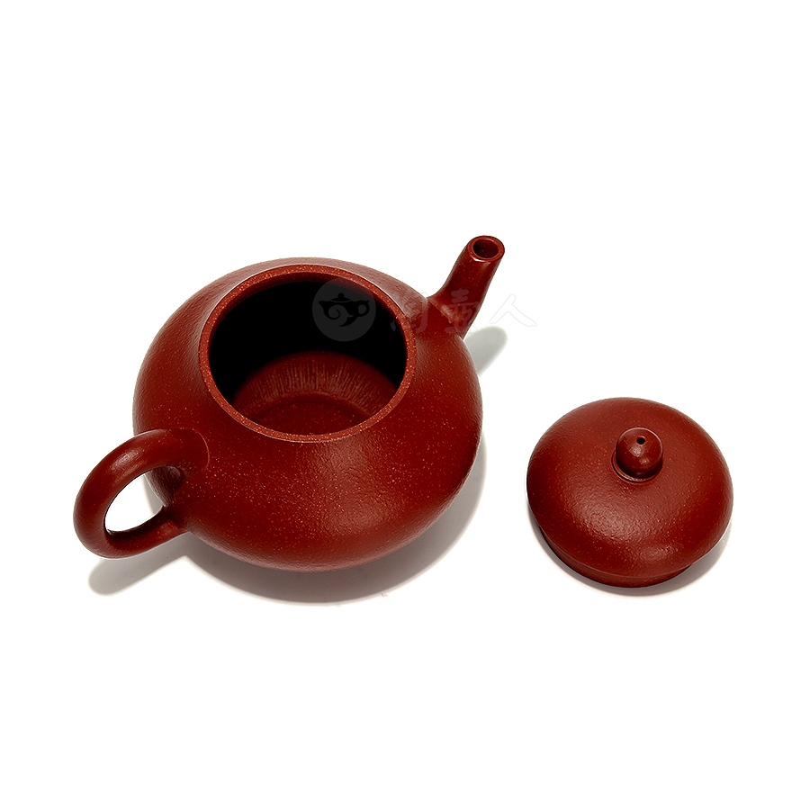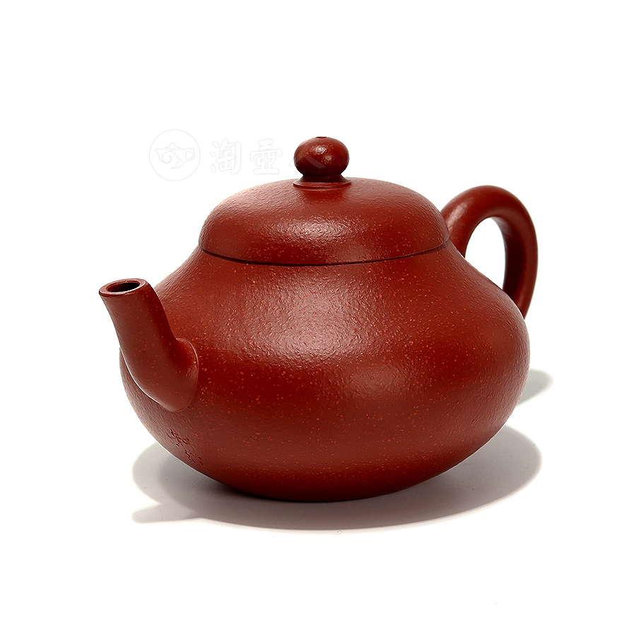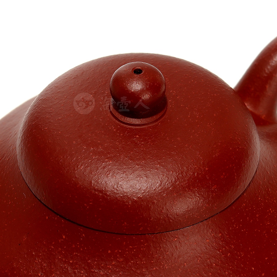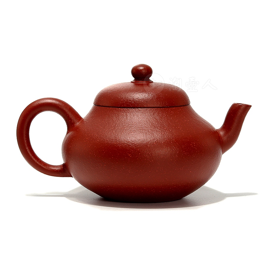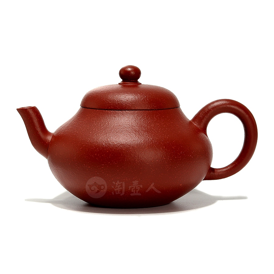 此件孟臣壶,甄选粗砂大红袍朱泥精心抟制,壶色红而不艳,通体砂感充沛,视觉效果相当丰富,泡养几次后渐生莹润包浆。壶型为矮梨式,鼓腹沉稳下坠,自壶腹向上至壶口缓缓收束,线条流转自然顺滑,整体造型圆润饱满,端庄雅致。