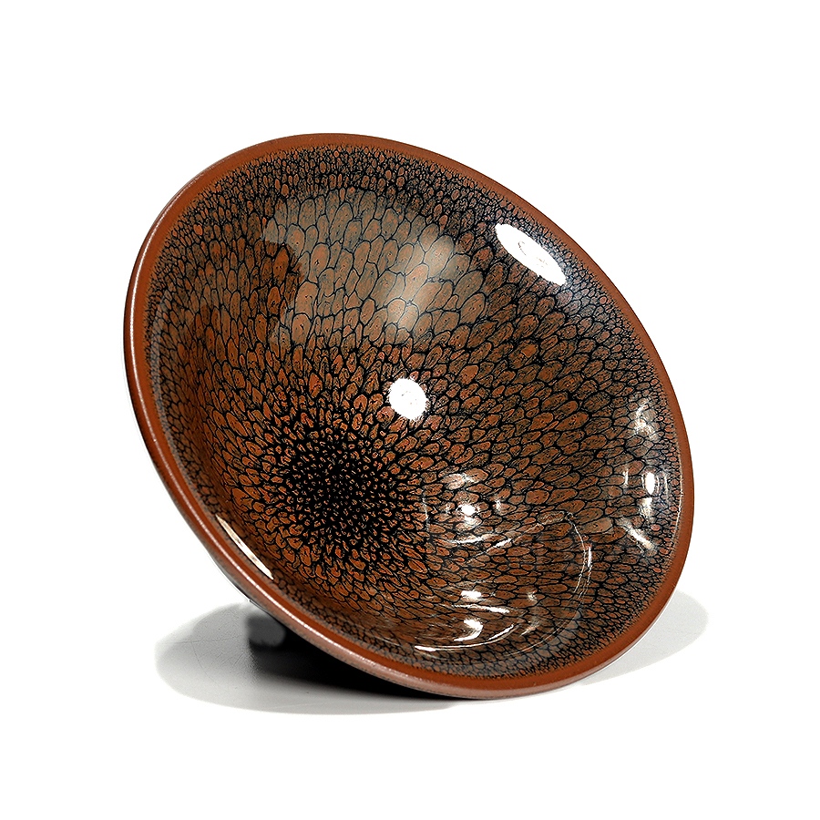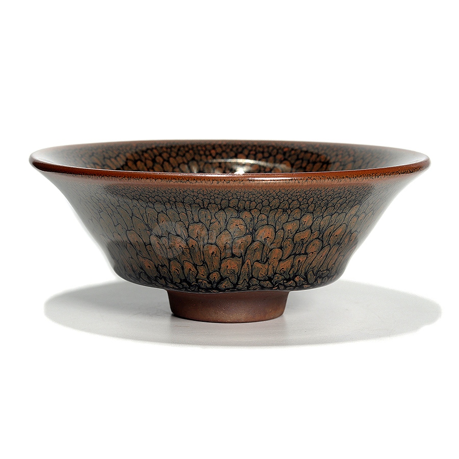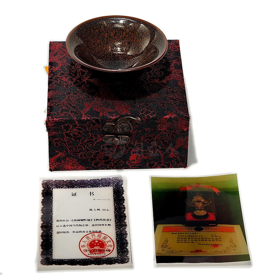 陈大鹏,1945年生于福建,国家建盏工艺师,中国古代陶瓷研究会会员。以其手艺超凡,作品表现力极强,业内早已闻名遐迩,获邀多次赴海外天目陶瓷文化交流大会,作品被日本、美国、英国、新加坡、马来西亚、韩国、澳大利亚、港澳、台地区名家收藏。潜心致力于建盏创作与技艺恢复,自1979年受命恢复建窑失传工艺始,潜心40年研究兔毫天目、鹧鸪斑天目、乌金天目瓷,使失传近千年的古瓷工艺重放异彩,国家文化部长久收藏。现他年事已高,故盏较珍贵。行情:2-7W。 收藏咨询热线 /微信:18501662999