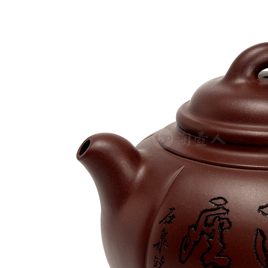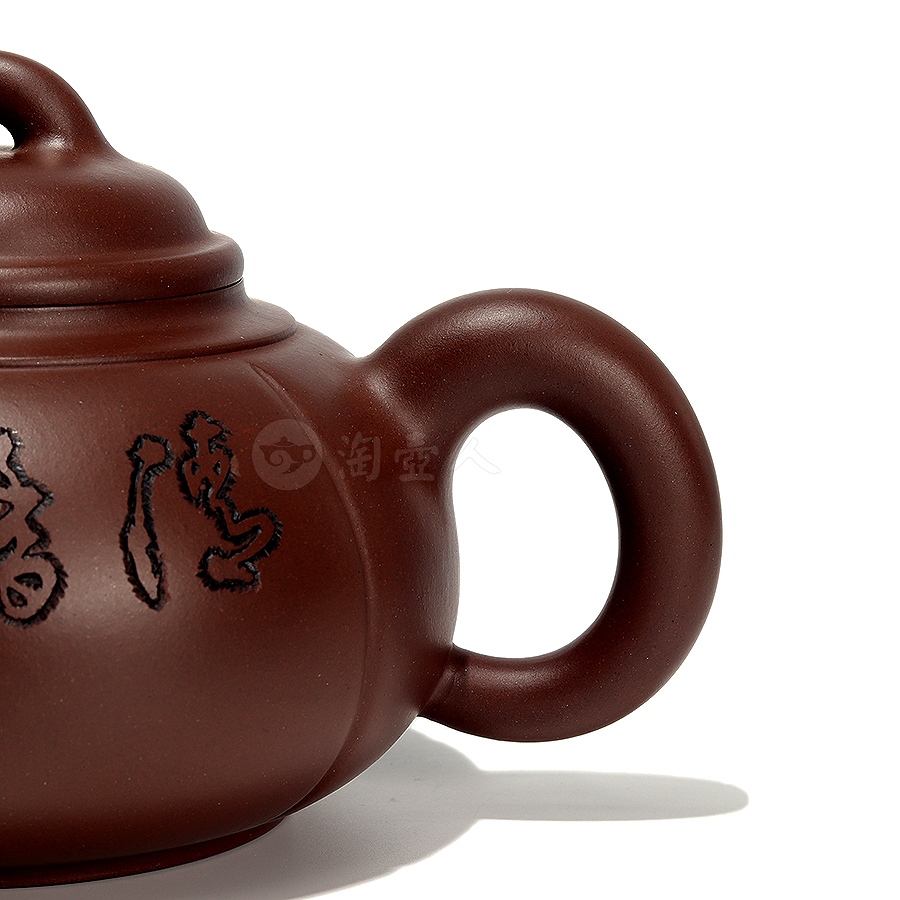 • 细节之精:壶颈饰以云肩,壶底圈足沉稳稳健,结构上形成呼应;管状桥钮精巧雅致,鸟喙式短流出水利落,粗壮执把握持舒适,各部件搭配协调,整体气韵浑然一体,尽显紫砂器“实用与审美合一”的本质。