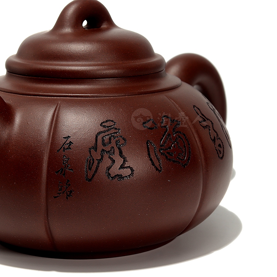 此壶甄选原矿老紫泥成型,老紫泥砂质温润、色泽沉穆,经三十余年的岁月滋养,壶表已泛出柔和的包浆,更显古朴典雅。580CC的容量,既适合日常品茗把玩,也可作为案头清供,在一泡一斟间,感受紫砂与时光交融的魅力。