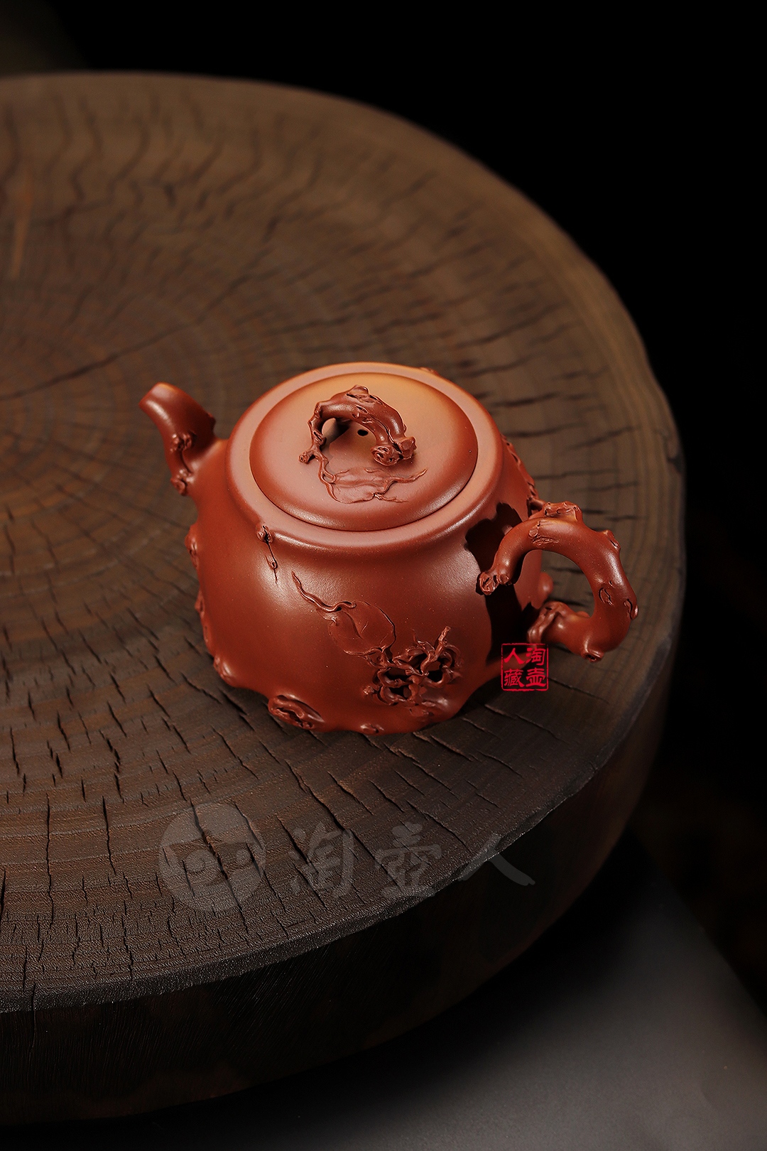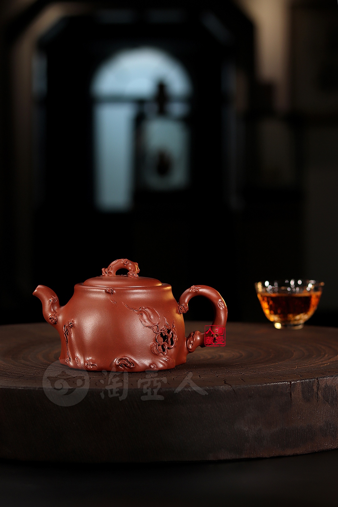 • 泥料天成:此壶选用家藏原矿黄龙山顶级红皮龙,泥质温润细腻,色泽呈深沉的古铜红色,泡养后愈发油润古朴,自带一份沉静内敛的禅意。