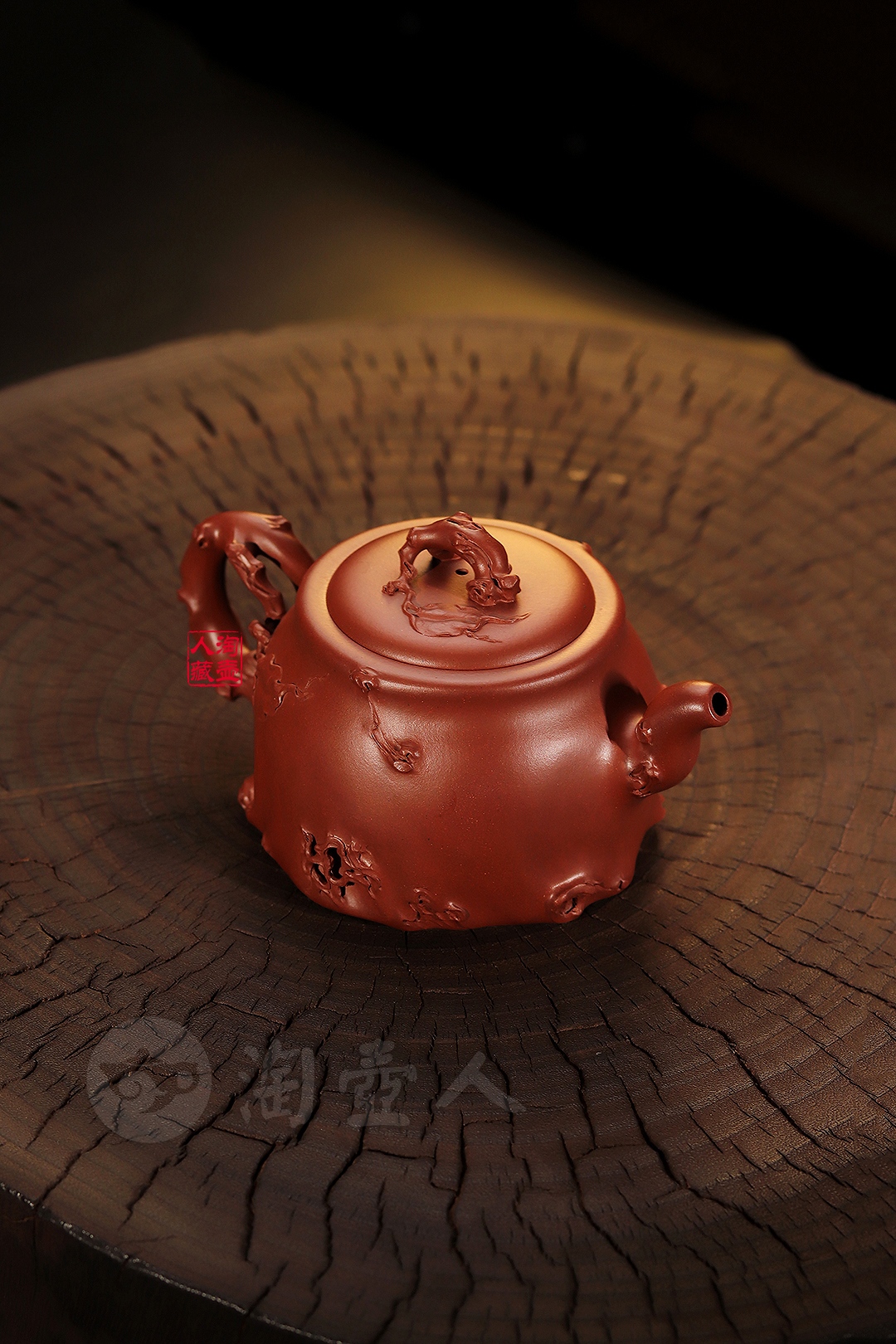 • 禅意流淌:作为花塑器的经典之作,壶身以自然肌理为饰,凹凸起伏的表面仿佛凝固了老树的年轮与风霜,每一处细节都在诉说着时间的故事。壶钮、壶把与壶身的浑然一体,线条流转间,恰如禅意的自然流露,引人遐思。
