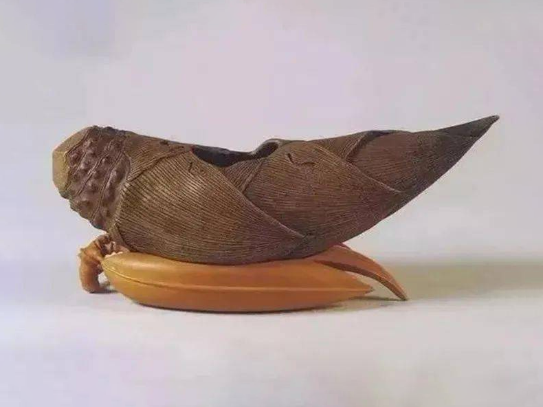 这是一件享誉紫砂界的名器。其胎质细腻温润,呈自然土黄色,造型酷似一横卧的竹笋,形态饱满圆润,尽显仿生之妙。