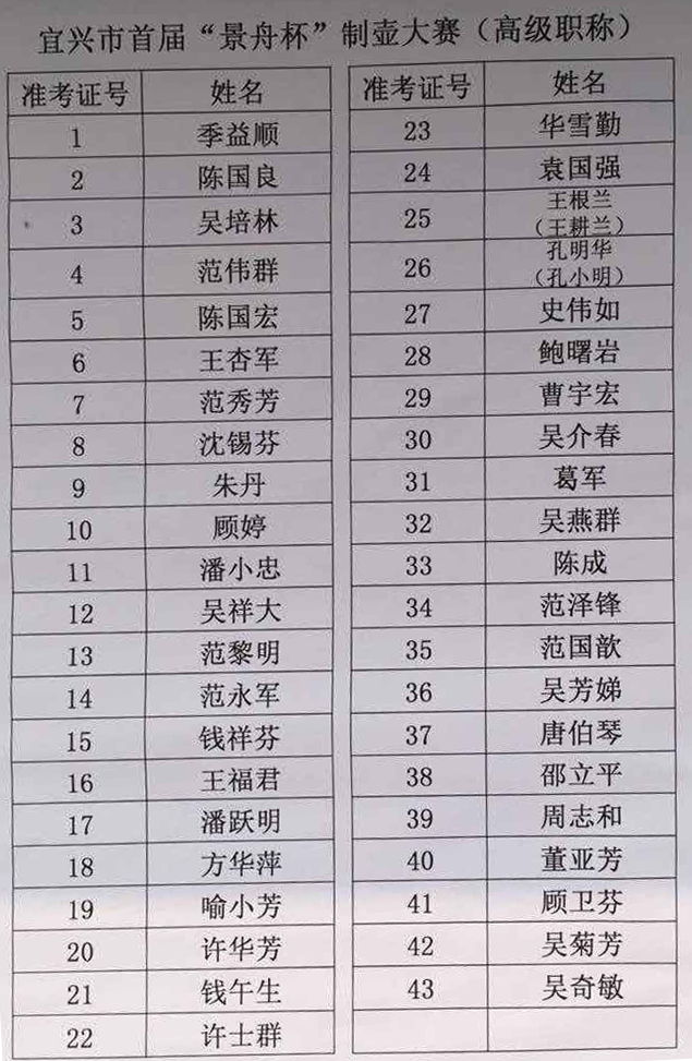 宜兴市首届“景舟杯”制壶大赛(高级职称)