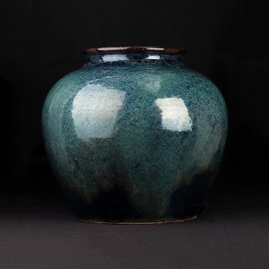 炉钧釉是清雍正时期景德镇御窑厂新创的一种仿钧低温釉,此后历朝均有烧造,盛行于雍正、乾隆时期。此种釉有施于瓷胎上者,也有施于宜兴紫砂胎上者,烧成后釉中紫红、蓝、绿、月白等色熔融一体,斑璨淋漓。清人撰《南窑笔记》曰:“炉均一种,乃炉中所烧,颜色流淌中有红点者为佳,青点次之。”炉钧釉主要以流淌的蓝釉形成自然的垂流条纹,其间密布红色或青色斑点。雍正朝炉钧釉瓷器上那种红中泛紫、似成熟的高梁穗颜色,被称之为“高梁红”。
