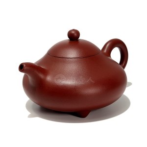 紫砂顾问:叶蕾 收藏热线:18501671666李碧芳此件天笠壶,摹古经典,采原矿老底槽清,制成于90年代末,壶身造型仿扁圆瓢瓜之态,下腹饱满丰腴,线条至上部缓缓收束,过渡自然,三枚底足呈乳丁状,小巧圆润且稳固挺拔。