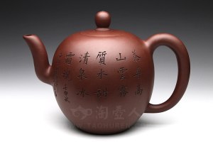 陈夕良老师的这款全手东坡提梁壶选用泥料非常好,原矿铁砂泥泥色纯正,成色如铁,赤金色泽非常抢眼!此款作品最大特点为陈老师采用家藏多年的稀有铁砂泥全手工精制,以壶盖轻敲壶把,发出清脆悦耳似铁的声响,此点最最与众不同;此壶亦被宜兴陶瓷博物馆长久性收藏;再加上陶刻大师金田(闻正荣)亲自操刀刻绘,使此把壶更具收藏价值和意义,喜欢的壶友绝对不容错过!