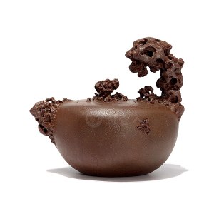 殷祥此款《全手太湖石》紫砂壶以段泥作胎,整器以太湖石为题材,圆柱形壶身敦实端正,钮、流、把巧妙化作不规则的太湖石,灵秀飘逸,加之壶身底部装饰,更显浑穆古雅,工艺相当精美。收藏咨询热线 /微信 :18501662999