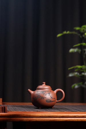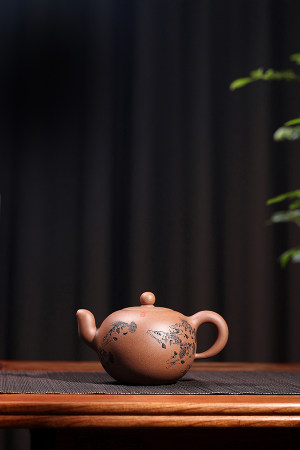 厉上清《一粒珠壶》体似圆球形,无颈,三弯流,口盖为嵌入式,小圆珠钮,为传统紫砂造型。形制浑圆可喜,造型又如同一颗珍珠般珠圆玉润,饱满剔透,惹人喜爱。采原矿降坡泥全手工锤……