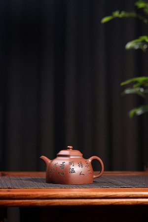 厉上清《乳鼎壶》为曼生壶式之一,壶呈圆腹、下宽上收,短曲流、环状柄;乳鼎钮、三乳足。整壶丰满圆润,线条挺括流畅,色泽温润细腻。壶身形体饱满、浑圆如珠、光滑细致……