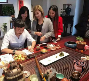 著名演员李冰冰嗜茶如命,参加各种活动势必要将紫砂壶宣扬一番。网上有一李冰冰执类似顾老“扁樱”壶沏茶的图片在流传,在一次节目中冰冰美女说此壶叫“圆樱”,李冰冰人美气质佳与这把壶很是相配。