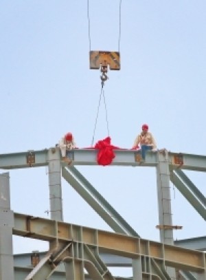 昨天,随着一根长约2米的钢梁缓缓吊上市文化中心大剧院的屋顶并进行安装,大剧院钢结构顺利完成封顶。至此,市文化中心所有场馆的主结构都已基本完工,全面进入内外装修阶段,“东氿之花”即将缓缓绽放,露出美丽容颜。