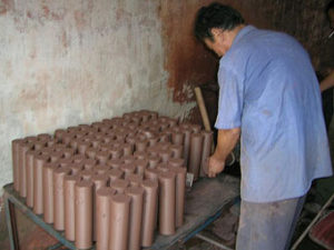 紫砂壶的线条装饰种类丰硕,有各种线条。这些线条都是用由牛角、竹子、铁等材料打制出的特定工具制作的,而且一般来说艺人们都是亲手制作这些工具以求最适合自己。而制作出的线条不仅有艺术装饰效果,而且可以分担线条黏结处的张力,进步烧制时的成品率。