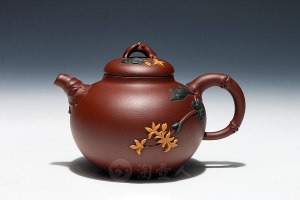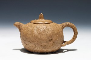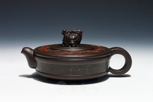 相传风卷葵是清朝制壶大家杨彭年妹妹杨凤年所制.一年秋天刮了好几天的大风,花园中的花草被吹得乱七八糟,心里想着想着突然看到在一枝花干上项着一只壶,但这壶的样式以前从未见过,定睛一看原来是当年自己种下的锦葵花,它被风吹歪了又挺起来,花瓣也被吹得拢在一起,四周花皆被摧残只有锦葵花依然如故,始终不散,于是以此为形经过无数更改后制作出此款风卷葵。风卷葵因为其造型简洁明快,曲线顺畅自然,规范的图案以及生动活泼的形态成为花货的传统经典器型之一。风卷葵壶的造型在康熙时期就已成熟定型了。早期的虚扁壶的壶