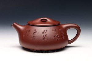 石瓢被称为“跌不破的壶型”,壶中百变,首推石瓢。《石瓢(汉棠式)》是王旭生老师制作的紫砂精品。王旭生老师师承中国陶瓷艺术大师徐达明,后跟随师公徐汉棠深造。壶艺精湛,擅长传统器型与陶木结合。此壶壶体沿用了徐汉棠大师的徐门石瓢造型,壶腹饱满有度,平盖桥钮线条和缓但蕴力十足,直流嘴与三角把线条修圆,简洁中更有几分敦厚之韵。可说是有骨有肉、骨肉亭匀。壶体陶刻寄吾心意于其壶中,落款“上清为之”。反面刻浮萍小鸟,颇有雅意。