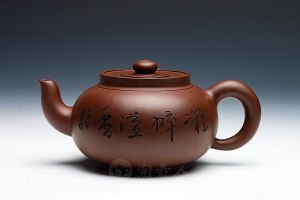 堵江华老师撰写的《中国紫砂审美史——暨宜兴紫砂名家谱》是众多紫砂爱好者、从业者必读的文献。在有关他的采访中,他把大家关注的紫砂泥料、职称、收藏价值、代工等各种问题都作出客观分析,他励志不负韶华将一生致力于紫砂艺术的创作以及紫砂知识的传播中。他的作品有将军翰墨的豪放风,亦有田园情趣的婉约韵。《荷塘情趣壶》带有一点田园情趣的婉约。此壶是堵江华老师采用原矿老料底槽清,制作于癸酉年(1993)秋月的作品,由徐勇良(老良)铭刻装饰。