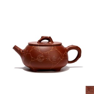 紫砂顾问:叶蕾 收藏热线:18501671666(微信同号)此件冰梅壶,创作于90年代,据徐元明大师本人回忆,当时仅做过一件,是为孤品。此壶是其在徐汉棠大师身边所制,取石瓢之型演变而来,壶身采用冰裂纹嵌泥技术,亦是师父徐汉棠的一大特色。