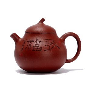 紫砂顾问:叶蕾 收藏热线:18501671666(微信同号)陈鑫梨形壶,采原矿紫砂泥,以薄胎技法制成,壶型取“梨”意,整体造型既保留了梨果的圆润可爱,又蕴含着典雅端庄的气质,壶身由作者自刻装饰,正面镌“多福”,反面刻绘清供奇石。