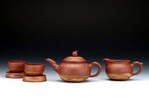 半手工壶是指,壶嘴,壶把,壶盖等用手工制作,身筒最终用模具成型,即将拍出雏形的身筒纳入专型的石膏模具内进行规整,然后用专用工具进行推、勒、刮等制作完成。半手工与全手工的区别,仅在于拍出的雏形身筒,一个纳入石膏模具中进行规正处理;一个凭作者的技能,用外力拍打,使之鼓圆挺立。除此,从打泥片一直到嘴、钮、盖的安装以及光身筒等工序和技法是完全一样的。很多壶友担心半手工壶可以利用模具进行无限量的复制,其实无需担心,半手工壶同样含有作者的思想在里面,并且也存在不可复制性。还有些壶,特别是花货不靠模具是无法制作的。如顾