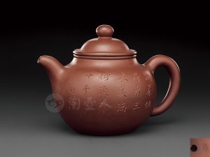 收藏顾问:宋平 收藏热线(微信同步)13761839361平盖石瓢壶(徐汉棠监制·鲍仲梅书刻)(陶刻都为孤品,鲍仲梅去世,更成了孤品中的孤品)采用家藏自拼紫泥,徐汉棠监制、鲍仲梅陶刻,徐曲制壶,三人合作款更具把玩收藏价值,当下也是超值价......