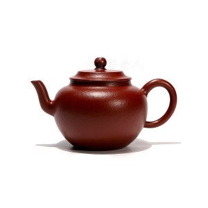 吴澄《莲影壶》选用原矿朱泥全手工精制而成,壶腹饱满,壶底内收,过渡自然圆滑,矮颈与压盖密合,盖面隆起呈二阶状,以弧线过渡,壶钮亦有圈线装饰,俯视似气孔为中心向外作圈状放射,颇具层叠之美。