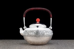 收藏顾问:宋平 收藏热线(微信同步)13761839361《螭吻提梁》精选纯银S999全手打造而成。壶体抛光,亮如镜面,壶身錾刻螭吻图腾,工艺繁杂精湛 1360CC 680克纯银999打造