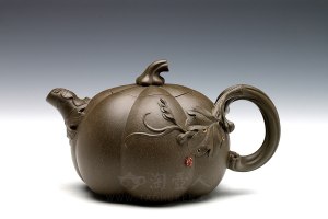 周菊英,1968年生于陶都宜兴,2015年高工,师从邵毓芬,1988年进宜兴紫砂工艺厂,历数年艺渐精良,后得中国工艺美术大师吕尧臣,中国陶瓷艺术大师季益顺等多师指点,作品渐具大家这风,器 花、素皆长,尤其擅长花、光器制作。采用了原矿绿泥制作而成,壶容量为250cc,南瓜壶是紫砂壶中很常见的一种款型。此南瓜不仅外形酷似南瓜,更是集聚了南瓜的神韵,犹若瓜熟即将待落。壶钮、壶把嫉皆以南瓜藤为原型,形象逼真。壶嘴则若南瓜叶包裹而成,精巧别致,创意极新。壶把处一南瓜叶子胥出,苍老却不失神气。