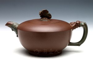 惠祥云,男,1968年出生于宜兴世陶之家,为明代制壶大家惠孟臣第十五代传人。自幼随父亲学习制壶,后得多位紫砂名家指点,根底扎实,工艺突出,对紫砂有着很深的感悟,被藏家称为“民间紫砂大师”。其作品不论是选料、造型,还是制作工艺,都可圈可点,精美绝伦,没有丝毫粗制滥造的痕迹,具有较强的艺术欣赏和收藏价值。采用了原矿老段泥制作而成,壶容量为400cc,是花塑器与筋纹器的结合,南瓜形壶体、反蒂状壶钮、由南瓜叶倦成的壶嘴以及瓜藤形壶把,壶身的制作自然生动,所有的筋纹刻划逼真,造型自然可爱。