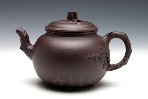 此壶采用了原矿底槽清制作而成,壶容量为380cc,从整体看此壶成了一件强有力的紫砂雕塑作品,以梅花灿烂绽放表现报春的主题,从壶身造型到创作原意都洋溢着无比的朝气,让人感到了春天来到的勃勃生机;壶身、流、把、盖全部是用极富生态的梅桩、树皮及缠枝组成,形态自然而富含力度;壶上梅花采用堆花技艺手法,壶嘴壶把为梅桩衍生出的枝干,伸展自然,有如自然长成,仿生性极强,充满了生命的活力;壶把和壶钮处胥出梅花,疏影横斜、暗香动人。盖款『吴』,『扣华』,底款印章『吴扣华制』,此壶做工精细,气度非凡,实用性观赏性都很