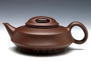 采用了原矿底槽清制作而成,壶容量为420cc,壶身是扁圆外形,上丰下敛的外观气质典雅,更显端庄。壶盖简练自然,平整光滑,直流壶嘴线条精炼,壶把精致有力,把握趁手。壶嘴和壶把之间以两条环线相连,正是线条左右贯通,外观清丽典雅,美感动人,展现了高超的紫砂技艺