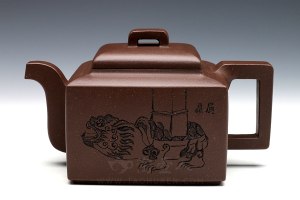 江建翔,男,1957年生于江苏宜兴,江苏省陶瓷艺术大师,当代绝对的实力派陶艺家,师承许承权、汪寅仙大师学艺,长期从事紫砂壶艺创作,所制作品风格俊秀、细腻、简洁、形神兼备,柔中有刚,美中藏刀,妙趣横生,孕化出一种神秘的韵律,使人浮想联翩,具有巨大的魅力,被誉为“紫砂四小龙”之一(另有陈国良、季益顺、施小马)。采用了原矿黑泥制作而成,壶容量为400cc,细观此壶,壶身犹若玉璧,精致美观,弯流壶嘴,暗接精湛无痕,出水流利;耳形壶把与嘴对称,宽和大气,持握舒适,桥形壶钮,拿捏方便,壶嘴,壶把,壶盖和壶钮与